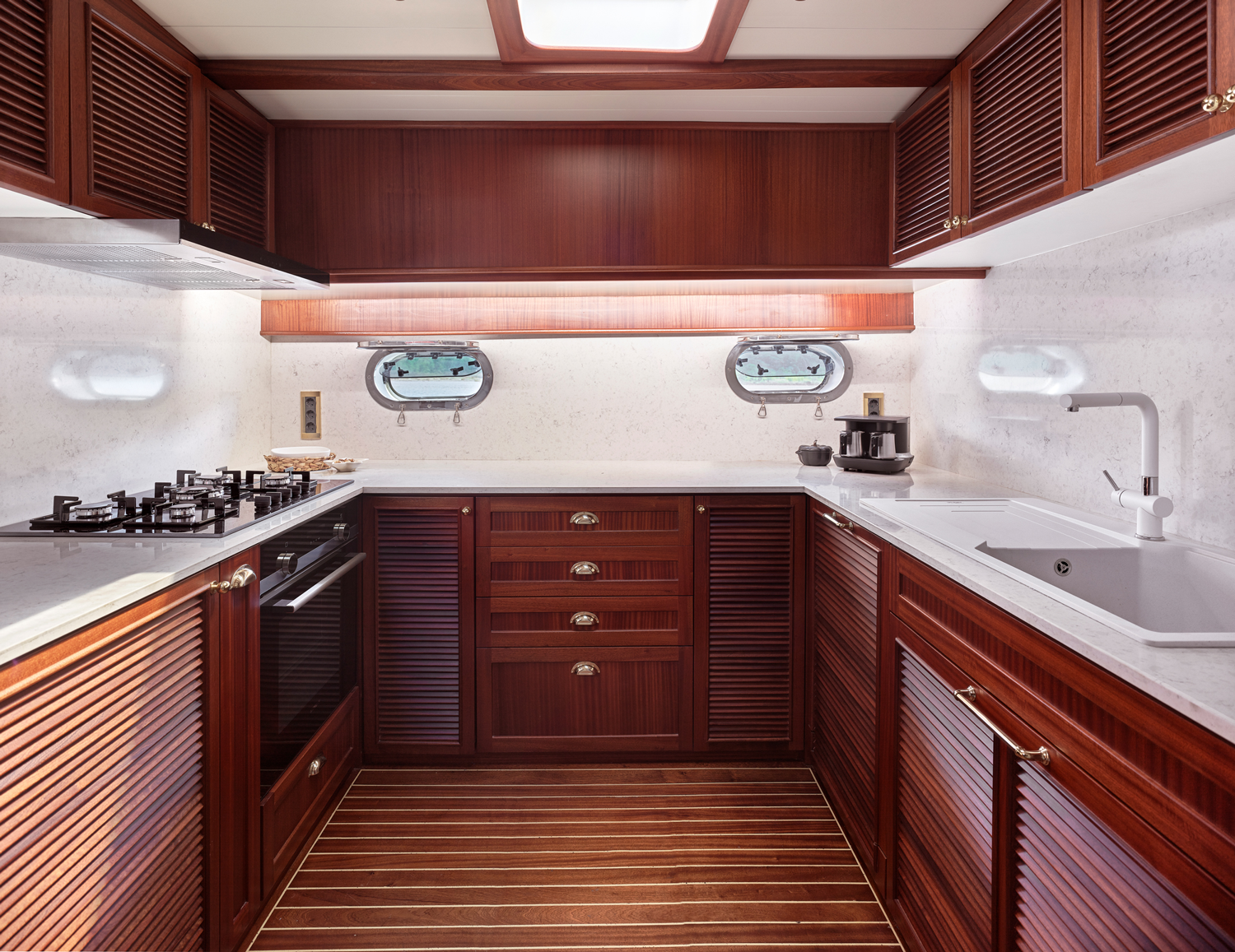 KAFTAN is an elegant wooden gulet with excellent charter record, suitable for nine sun seeking guests in 24-hour air-conditioned one master, one triple, one double cabin and one twin cabin. She measures 25.50m and offers very comfortable indoor and outdoor dining and leisure areas. The yacht provides a bimini shaded large sun tanning area on the front deck. A warm interior design and décor which truly is the success of a woman’s touch includes an elegant saloon. This vessel offers at a very affordable charter rate all the toys and amenities of much larger vessels and is the ideal option for an active family holiday. Thanks to a powerful 70hp tender water sports opportunities include but are not limited to water skiing, wakeboarding, paddle boarding, canoeing and snorkelling.